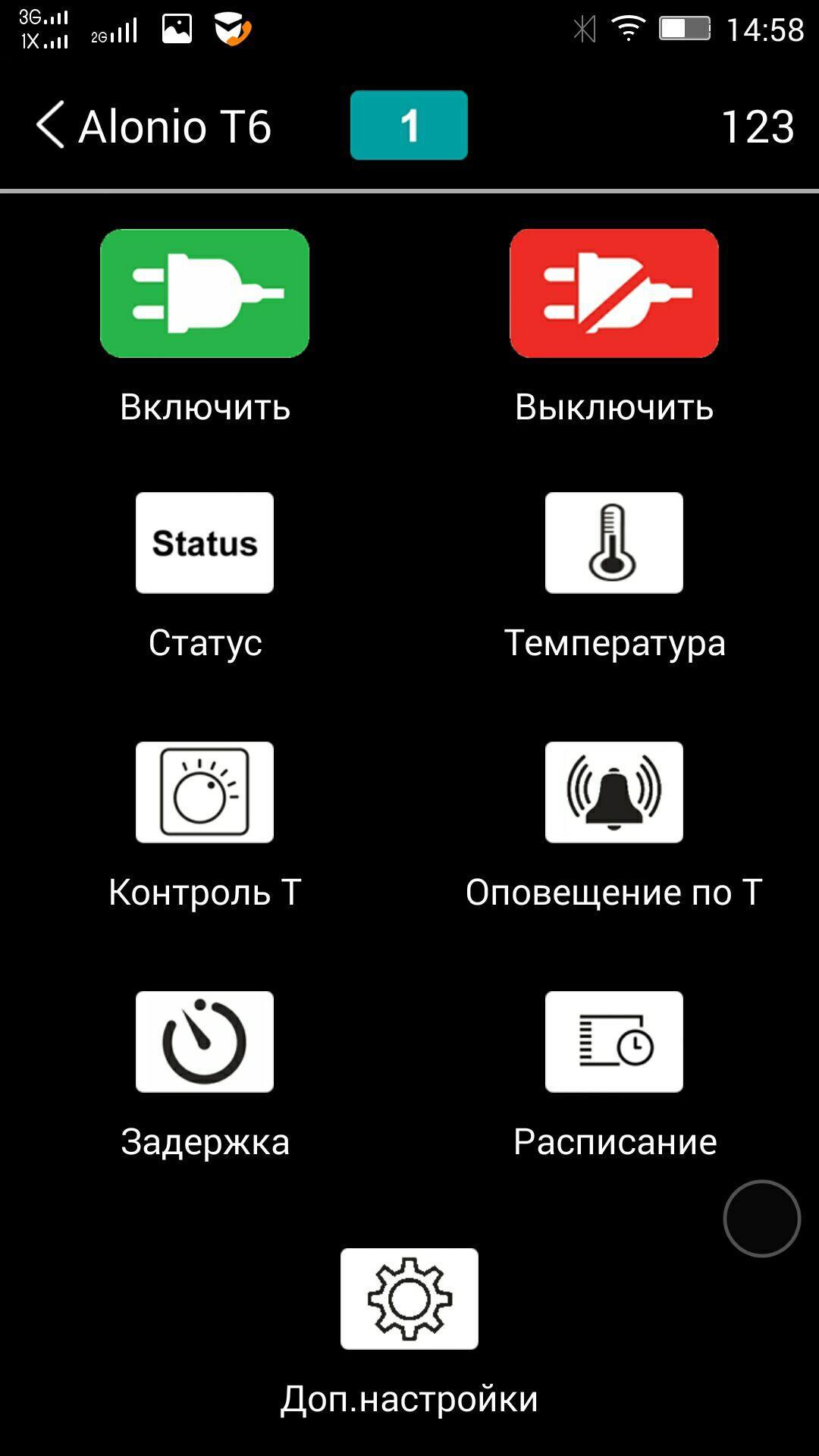 Using the application, it is easy to control the Alonio T6 GSM outlet - turn on and off various electrical devices, set the parameters of the outlet (temperature, schedule). The application helps to form and send the necessary SMS command. There is no need to remember all the SMS teams, it is enough to choose the necessary command in the application.