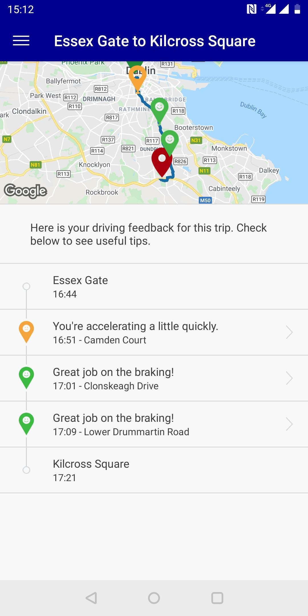 6. The DriveSave app will then show you driving feedback and tips for improving your score