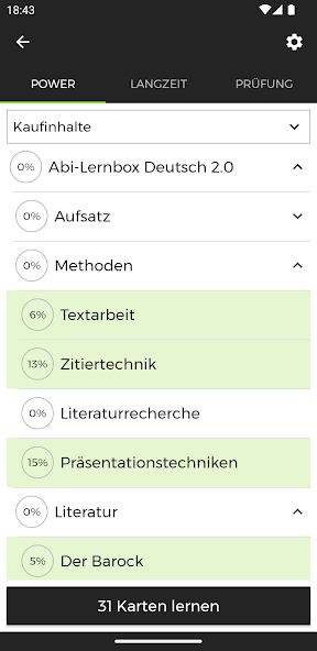 Shortly before a test, you study with your flash cards using BRAINYOO’s specially developed power mode to help you pass the test with confidence. The index card app shows you your individual progress, so you always know how far you are from your goal.
