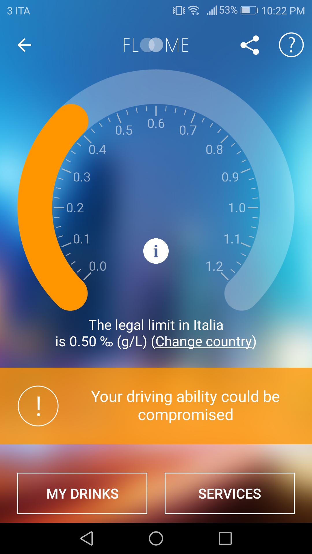 Floome offers several additional services, like: finding nearby taxis and restaurants, sharing test results with your contacts, and keeping track of the results by providing additional information such as the absorbed calories. * Smartphone not included