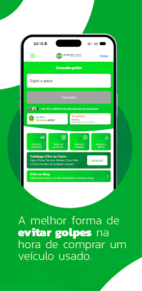 And of course you don't want any problems when buying a vehicle, right? So download the Olho no Carro app now