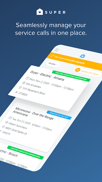 Super Pros use this app for the full workflow of a service call, from dispatch to resolution: