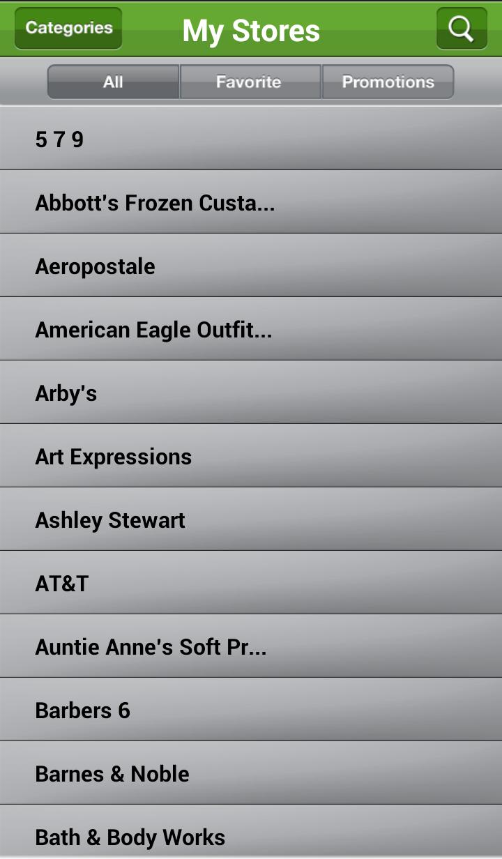 Sort Stores by Category, Favourites and Promotions