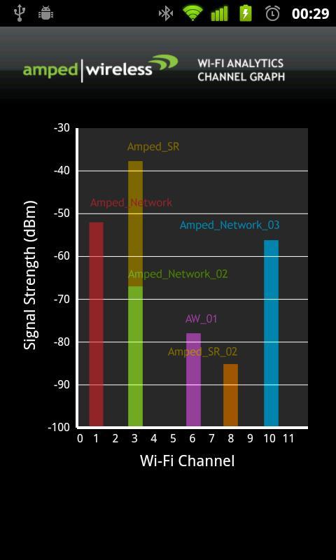 The Amped Wireless Wi-Fi Analytics Tool analyzes your Wi-Fi networks. It provides advanced signal strength graphs and analyzes Wi-Fi channels to help you optimize your Wi-Fi network setup. Features include: Wi-Fi Scanner, Channel Interference Analyzer, Wi-Fi Channel Graph, Wi-Fi Signal Strength Graph, and a Signal Strength Meter.
