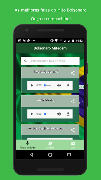 يحتوي تطبيق Braziliantrump (Bolsonaro Mitagem) على أكثر الإنجازات الرئاسية في بولسونارو. احصل على أفضل عروض الأسعار والميمات والصور المتحركة من الأسطورة ومشاركتها مع أصدقائك.