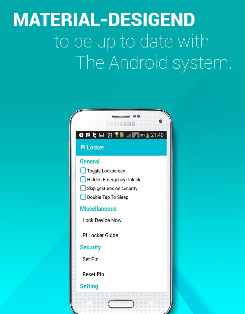 يعد Pi Locker بديلًا بسيطًا ومصدرًا ومصدرًا سريعًا وسريعًا مع التخصيص والإيماءات الذكية. الميزات: ✓ واجهة تنظيف خفيفة الوزن ✓ رام ودية ✓ سلس على الأجهزة ذات النهاية المنخفضة نصية نصي قابلة للتخصيص ✓ تخصيص نص ملون ✓ بطارية النسبة المئوية لعمليات Pi Locker على الشاشة. التحديثات ومواكبة تطوير المشروع: http: //forum.xda-developers.com/showthread.php؟ p = 53218143pi تم عرض خزانة على Portal XDA: http: //www.xda-de developers.com/Android/pi-locker-bring الخزانة هنا: https: //github.com/pi-developers/pi-locker/ تحديث 6.0.1: