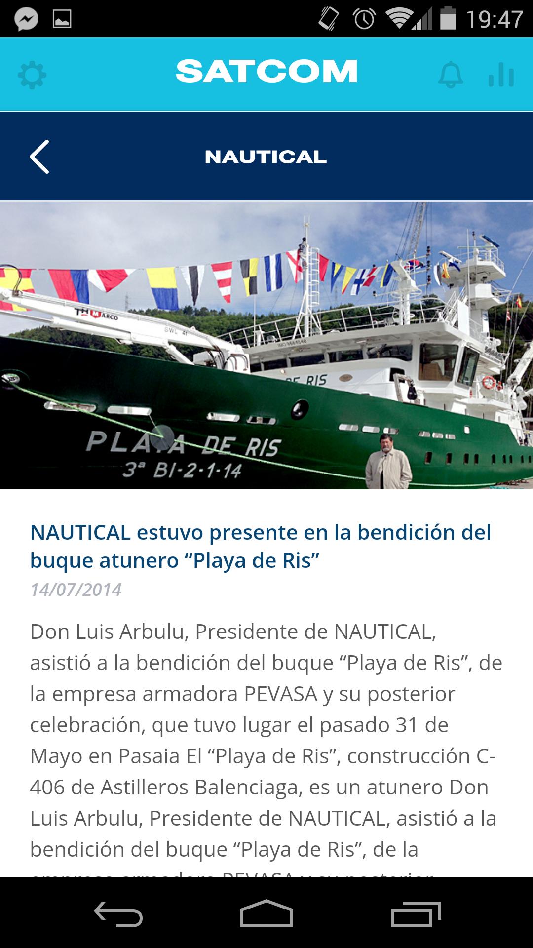 اتبع الأخبار من Satcom Nautical و Imarsat والاستهلاك الشهري مع التطبيق
