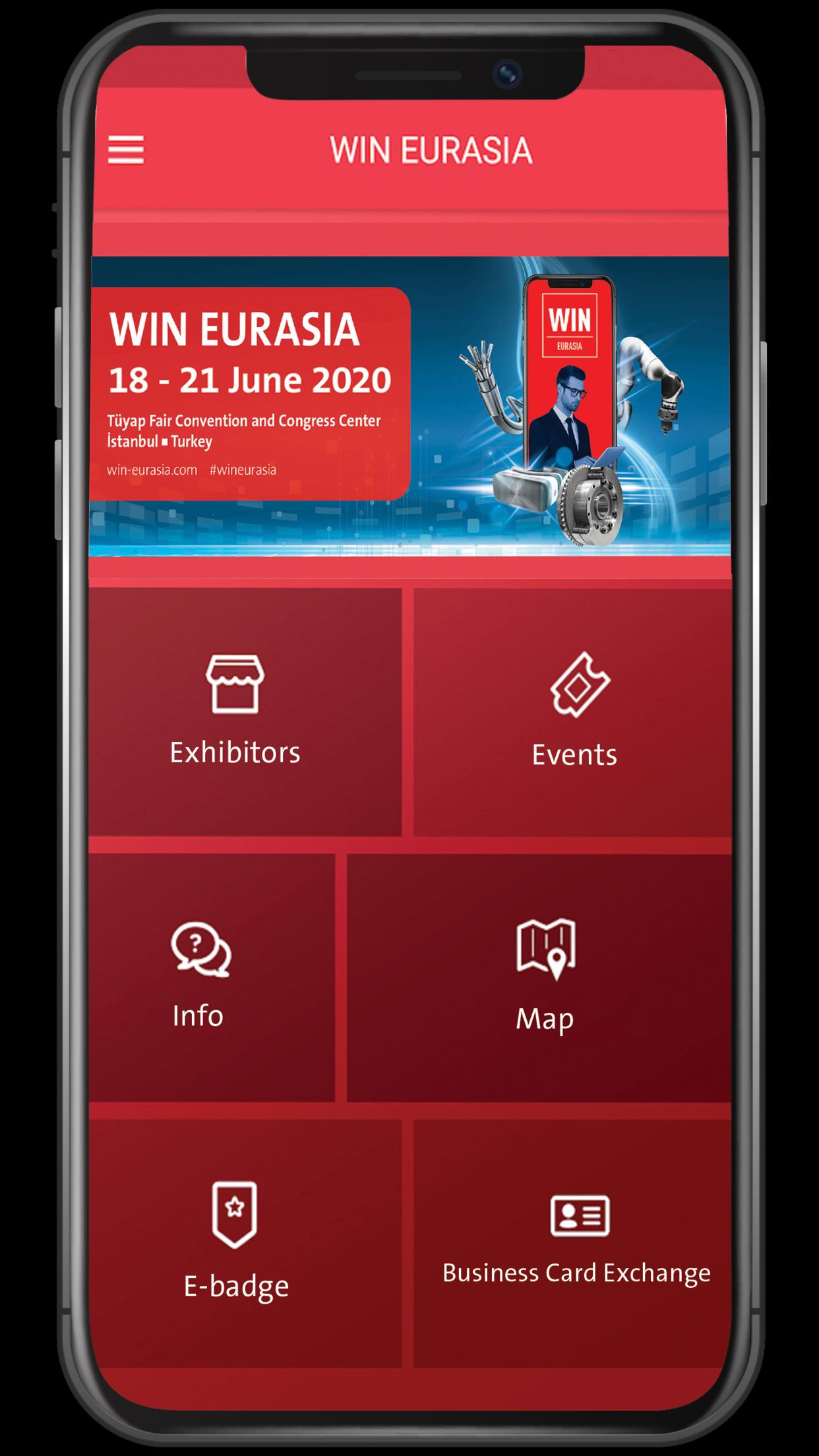 يوفر هذا التطبيق إمكانية الوصول إلى معلومات معرض WIN EURASIA التي عقدت في Tüyap Fair و Congress Center في إسطنبول ، ويقدم تجربة فريدة من نوعها مع ميزات فائقة مثل نظام الملاحة الداخلي في الوقت الفعلي ، والبحث التفصيلي للعارض ، وتقويم الأحداث والشارة الإلكترونية.