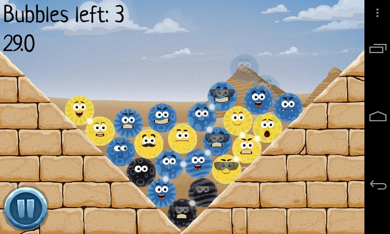 Bubble Couple هو لغز مادي مع رسومات وصوت جميل. فقاعات مع نفس اللون تصطدم ببعضهما البعض عند لمسهما. تبدو سهلة ، أليس كذلك؟ لذا حاول مسح جميع المستويات واكتشاف جميع أنواع الفقاعات.