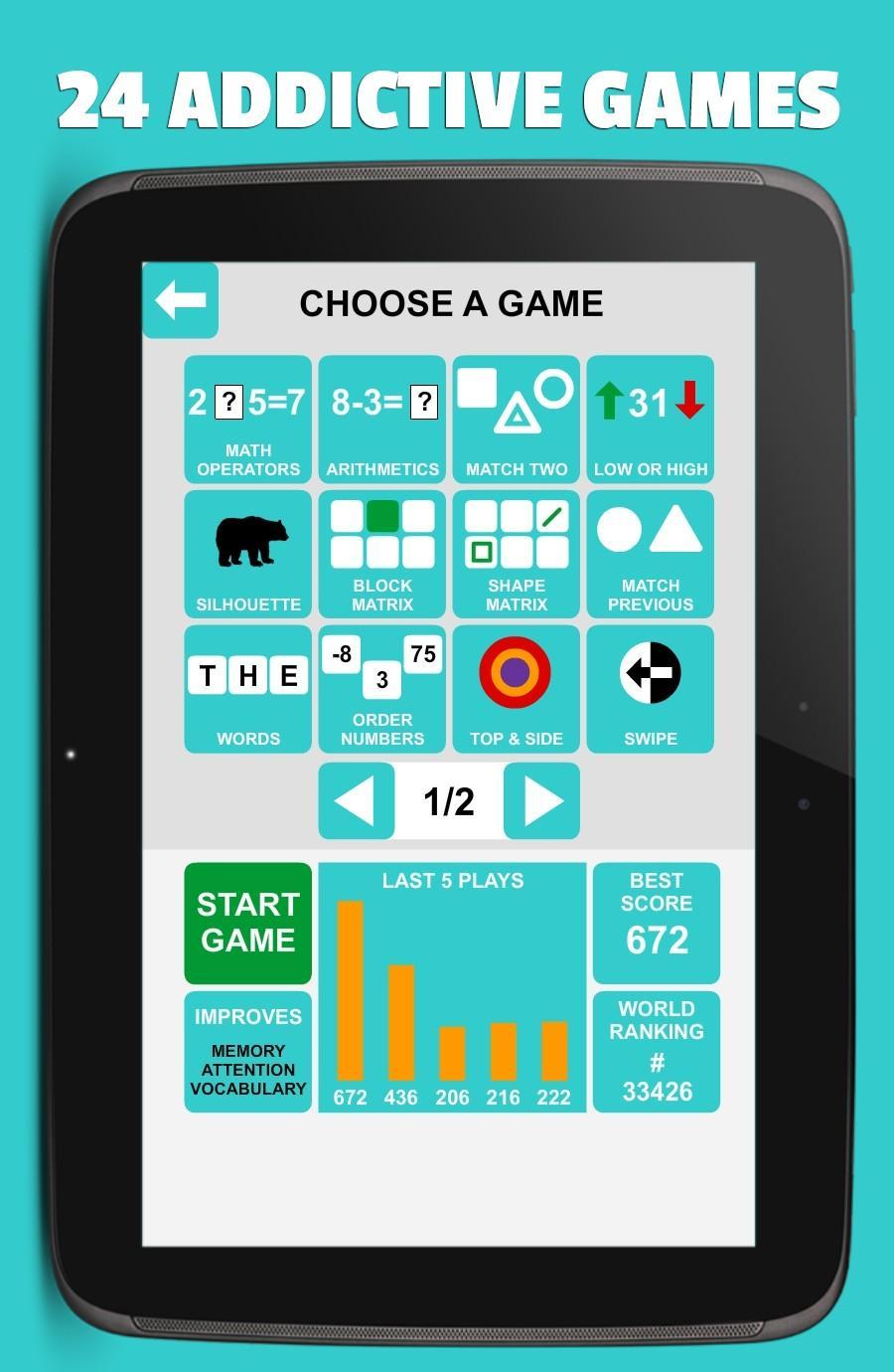 لا تفوت هذه الفرصة الرائعة! قم بتثبيت " Focus: Mind Trainer " الآن واستفد من 24 لعبة Super Mini المصممة خصيصًا للحفاظ على عقلك لائقًا!