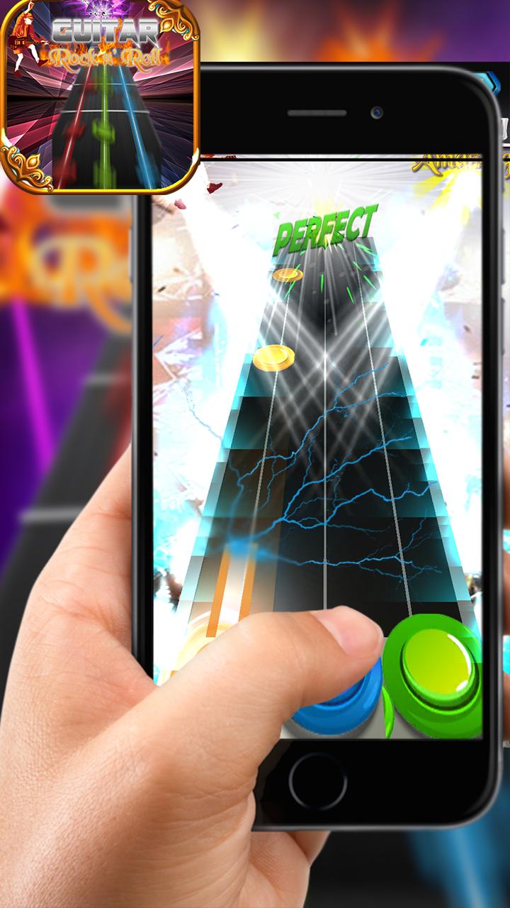 تجربة الأدرينالين من العزف على الجيتار منفردا كل الطريقة في Guitar Rock n' Roll . دمج أنماط النقر الاستثنائية ويسحب لإكمال جميع الأغاني في الرياضة.