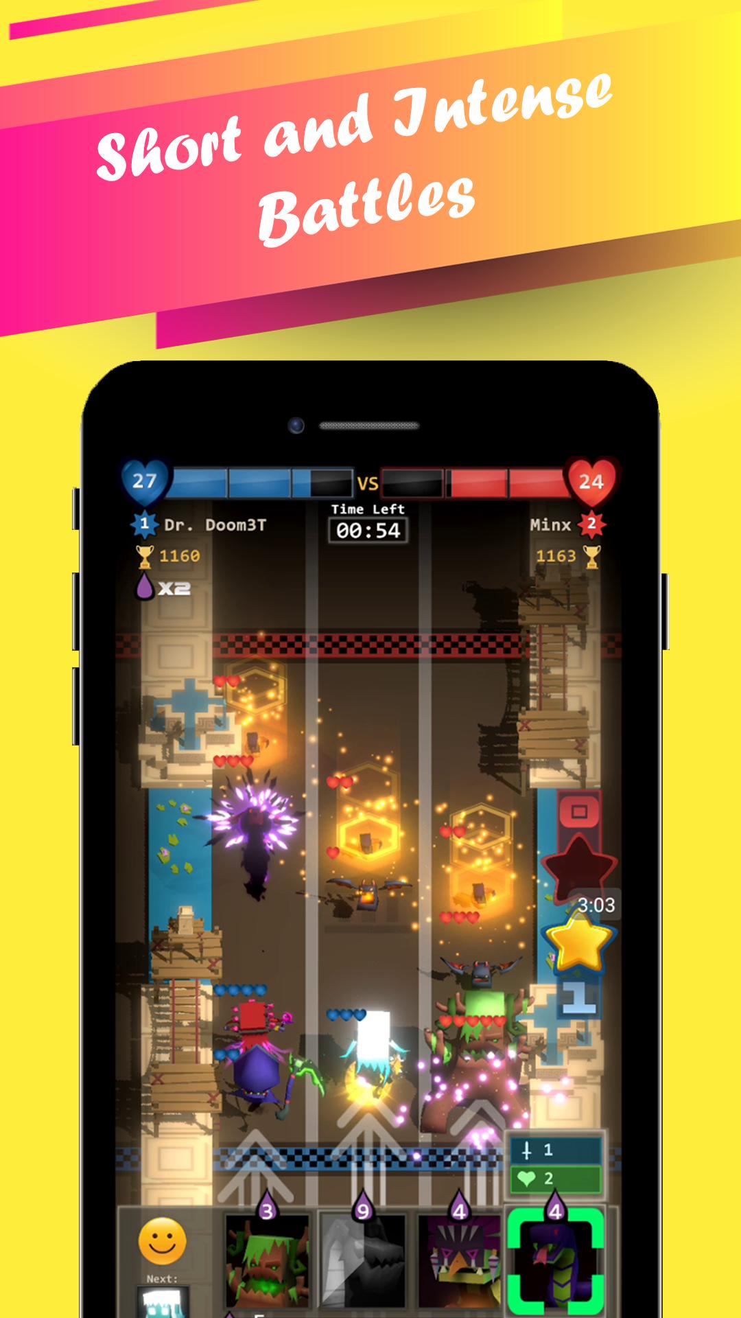 في هذه المعركة في الوقت الفعلي ، ستجمع وترقية الكثير من الشخصيات من جميع أنحاء التاريخ والأسطورة. الرماة للقتل من بعيد؟ العمالقة لاختراق الدفاع؟ أو الروبوتات لإطلاق النار على الليزر؟ سيحدث قرارك الفرق بين النصر والهزيمة! هزيمة أعدائك لتسلق المتصدرين ، وكسب مكافآت مذهلة.