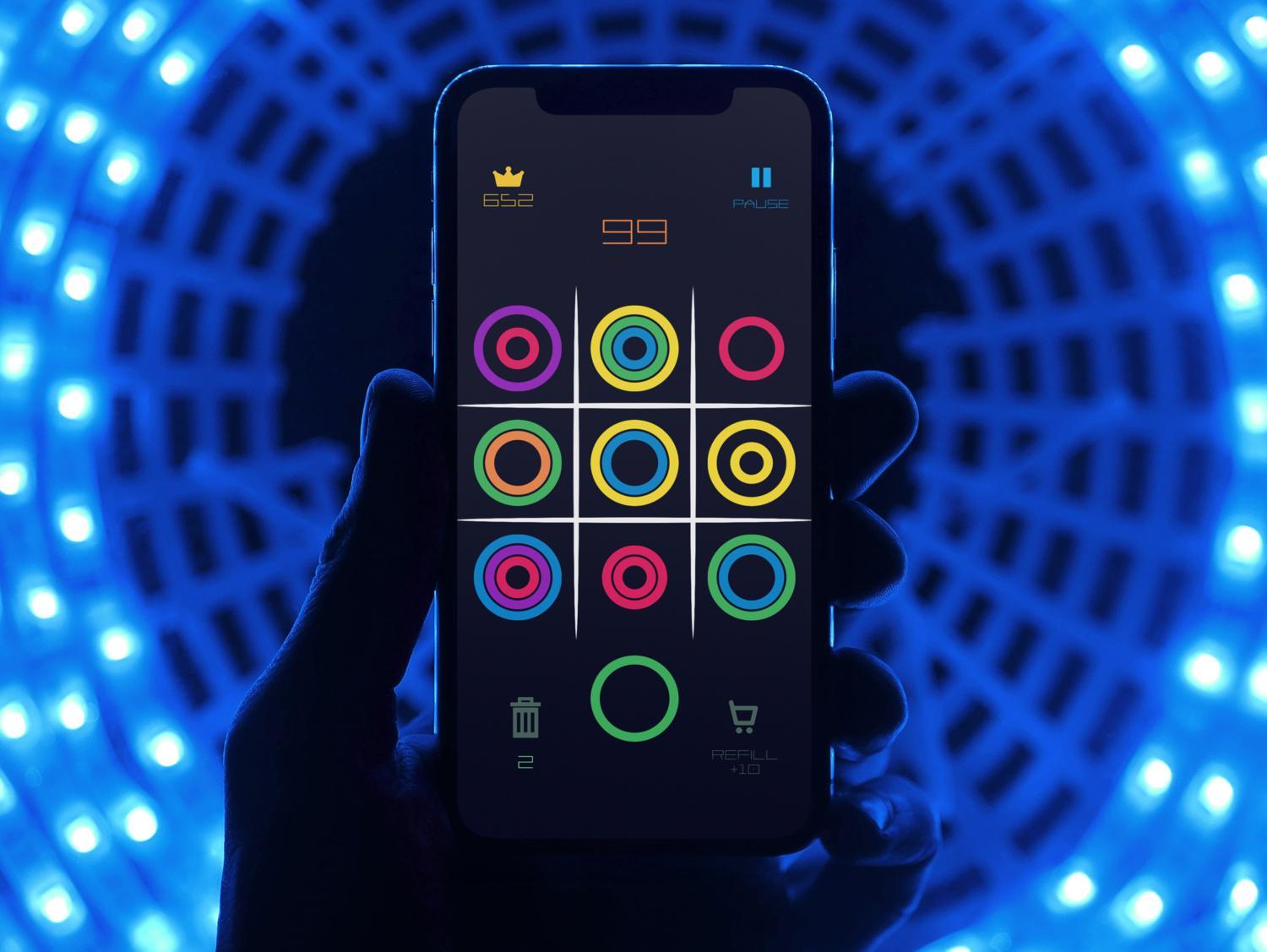tic tac tac toe twist. تطابق 3 حلقات من نفس اللون لتدميرها.