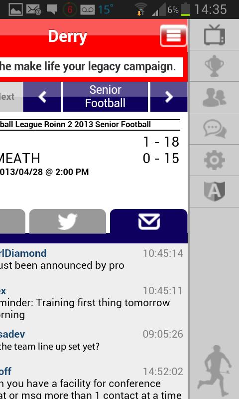 Icounty ist eine offizielle GAA -App, die Ihren GAA -Teams des Landkreises unterstützt und folgt. Die App enthält die neuesten Ergebnisse, Geräte, Nachrichten und Tweets von Ihrem County GAA. Öffnen Sie einfach die App und wählen Sie Ihren Landkreis und den Sport und den Niveau, dem Sie folgen möchten. Folgen Sie jedem Spiel, sehen Sie sich die Squad -Spieler, frühere Ergebnisse und befolgen Sie die Aktion, sobald sie live passiert. Stimmen Sie für Ihre, die Völker des Spiels ab und erhalten Sie ein Unentschieden, um Preise zu gewinnen. Chat mit Facebook, Twitter oder einem Igaafan -Konto. Seien Sie mit GAA -Nachrichten, County News, County Tweets und Inhalt bekannten GAA -Journalisten mit Nachrichten und Aktionen vor den Papieren und Online -Quellen auf dem Laufenden. Beweisen Sie, dass Sie sich alle über GAA -Spiele und -Ergebnisse und Team -Line -Ups für Ihre Freunde mit der Geschichte der Ergebnisse und der Teamliste kennen.