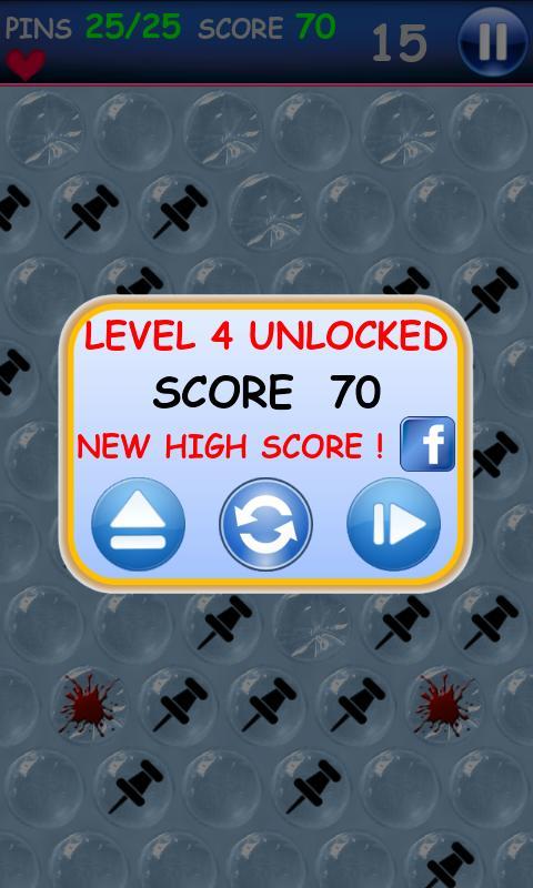 Wenn Sie eine Pin -Blase knallen, wird Sie verletzt und Sie verlieren ein Leben. Wenn alle Leben verloren gehen oder das Spiel endet, bevor Sie die erforderliche Anzahl von Stiften erreichen, verlieren Sie.