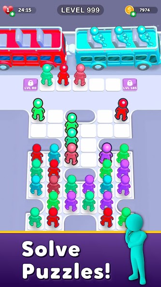 Die Passagiere warten auf ihren Bus, sortieren sie nach ihrer Farbe und schicken sie in den Urlaub!
