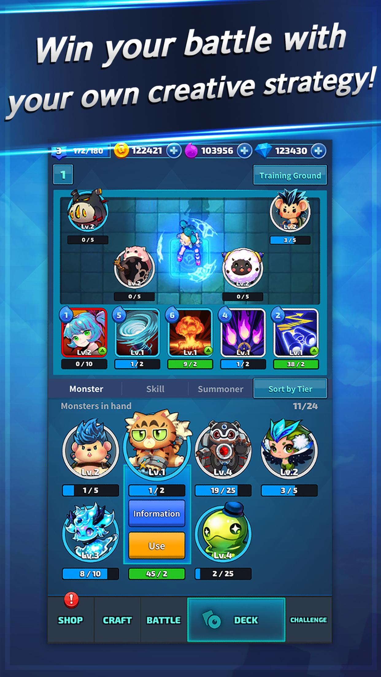- Kombinieren Sie Ihre beschworenen Monster, um eine Party zu erstellen, um Ihren Gegner zu überwältigen.