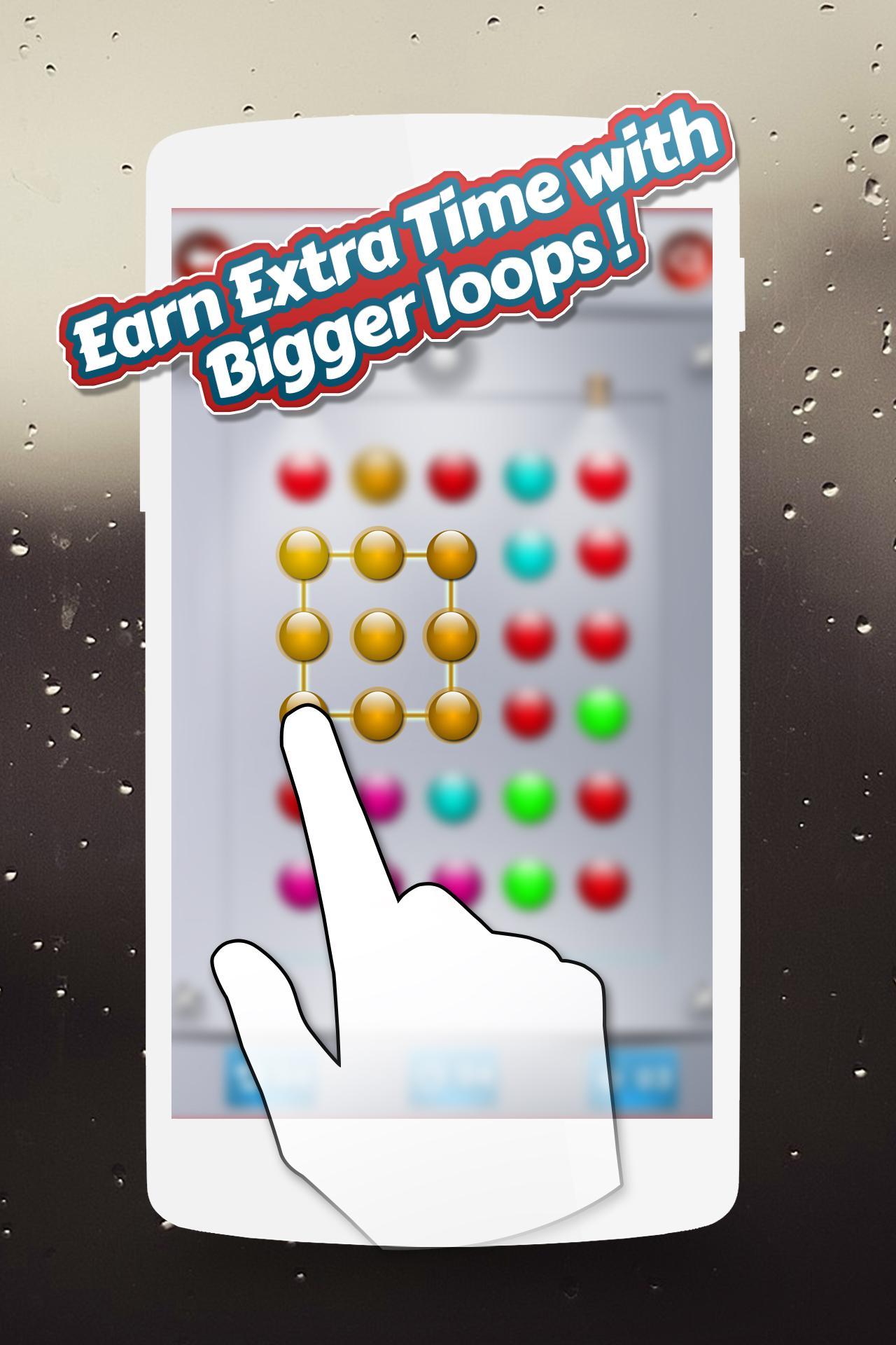 Das Ziel ist einfach. Verbinden Sie in 60 Sekunden so viele gleiche Farbkugeln oder Charaktere vertikal und horizontal. Versuchen Sie, mehr Zahlen von Bällen in einzelnen Touch zu verbinden und auch eine Schleife zu erstellen, da Sie Zeitbonus erhalten, wenn Sie 4 oder mehr Bälle in der Schleife verbinden.