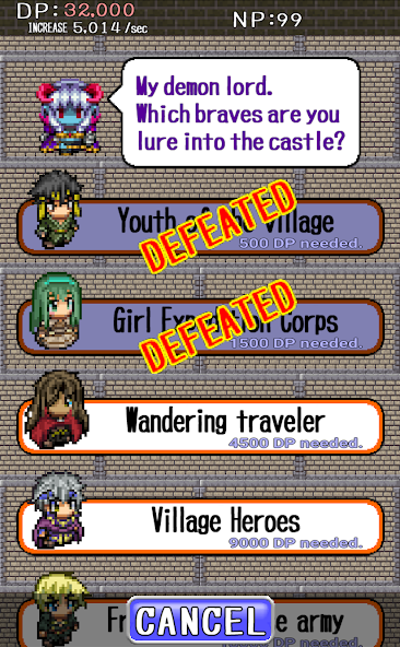 3. Tippen Sie auf 'mutig', um die menschlichen Braves zu besiegen! Das wird die Kraft des Dämonenlords auf der ganzen Welt wissen lassen.
