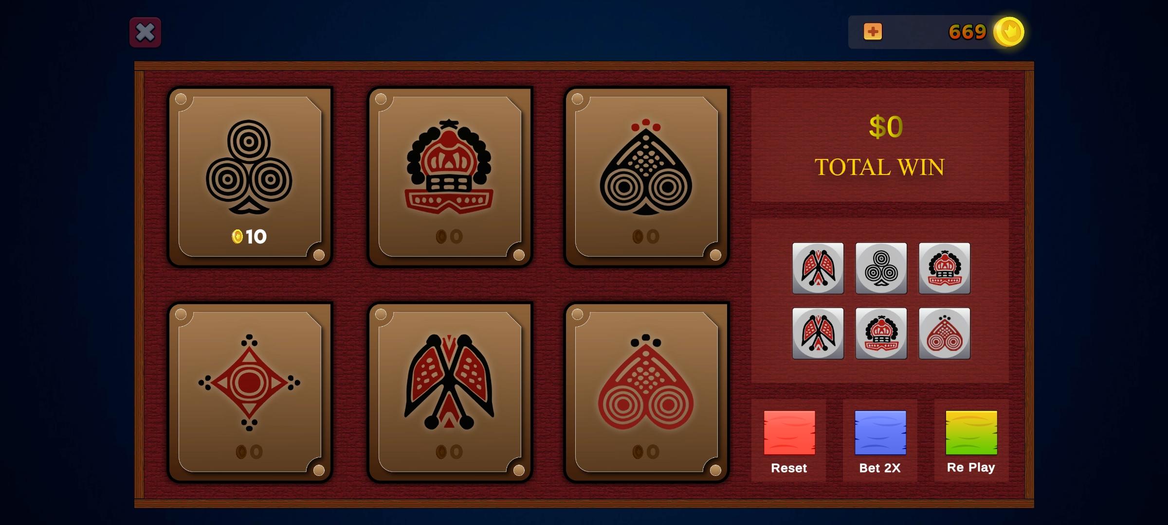 - Wenn keiner oder einer der Würfel das Symbol zeigt, das eine Wette enthält, kann der Host das Geld oder die Wette auf dieses Symbol aufnehmen.