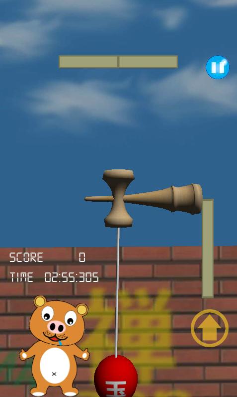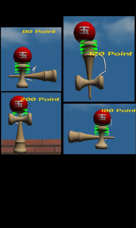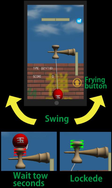 Ich kann den Körper von Kendama in Kontakt drehen.