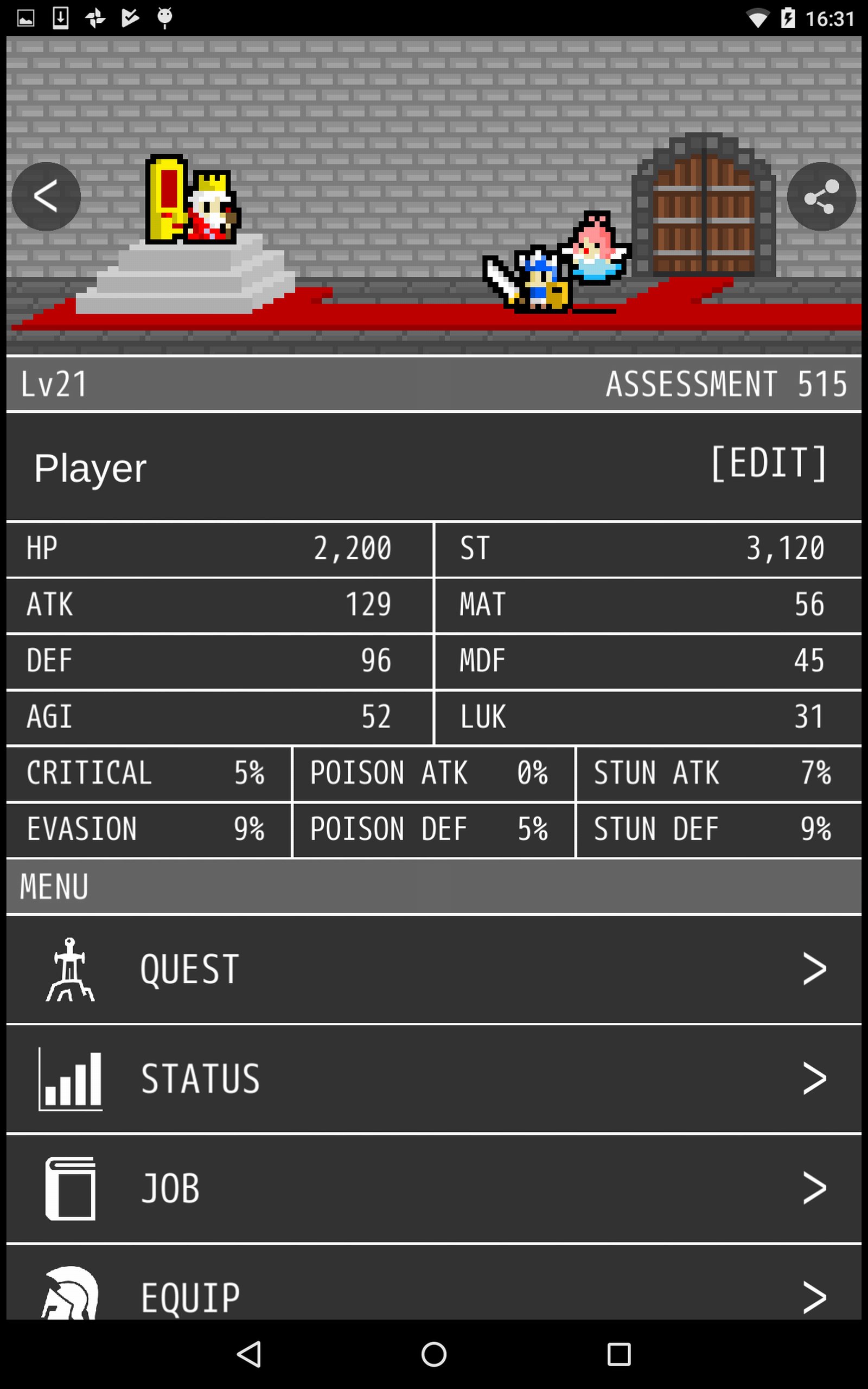 (1) Der Spieler wählt einen Job und eine Ausrüstung.