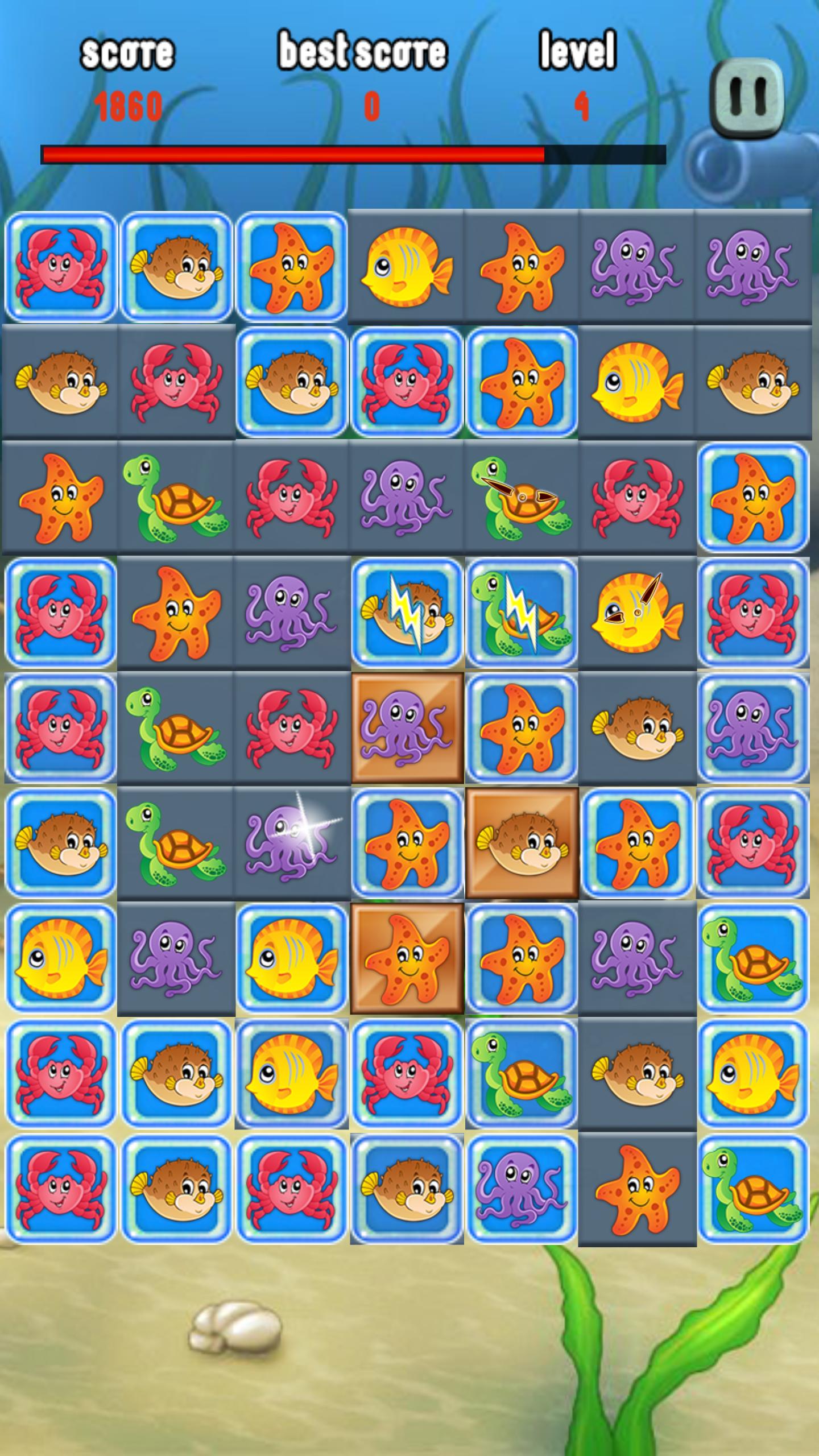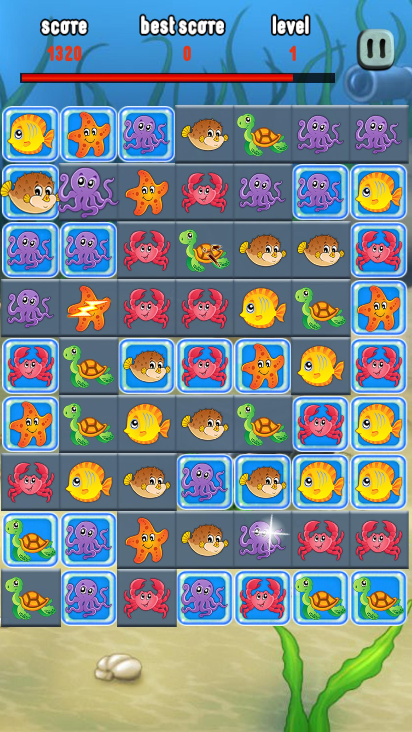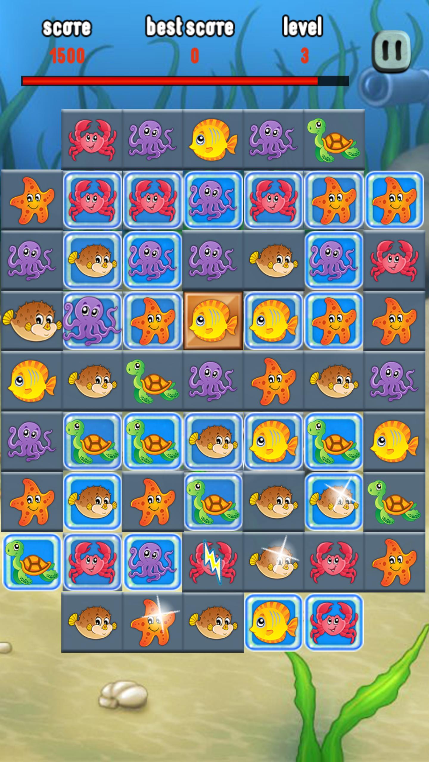 Tauchen Sie in die Meereswelt ein, wo Sie ein lustiges Meeresleben warten. Machen Sie Kombinationen von drei oder mehr Meerestieren. Ihr Ziel - in kurzer Zeit, um maximale Punkte zu erzielen und zum nächsten Level vorzusteigen.