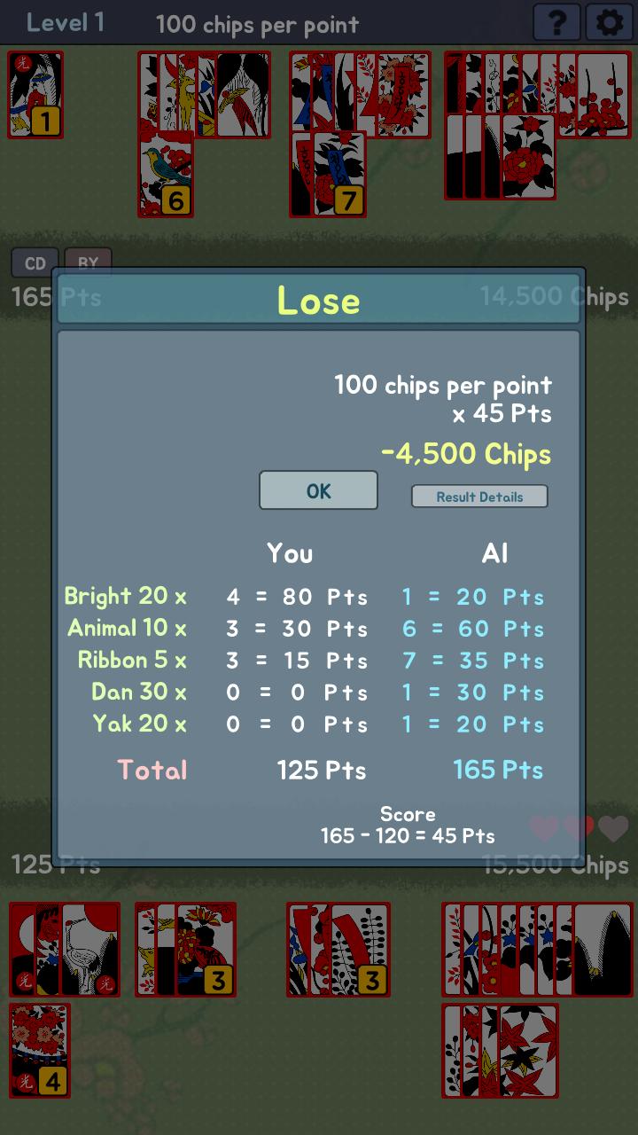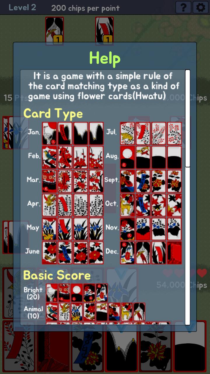 Es ist ein Spiel mit einer einfachen Regel des Kartenpassungsarts als eine Art Spiel mit Blumenkarten (hwatu)