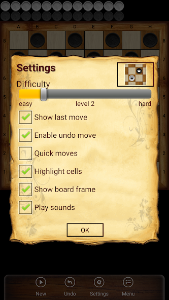 Die Anwendung enthält einen leistungsstarken Algorithmus der Spiele und die freundliche klassische Oberfläche. Fordern Sie Ihre strategischen Fähigkeiten mit diesem entspannenden Spiel heraus. Jetzt können Sie das Spiel der Checker überall, wo Sie sich vielleicht befinden, direkt von Ihrem Smartphone genießen.