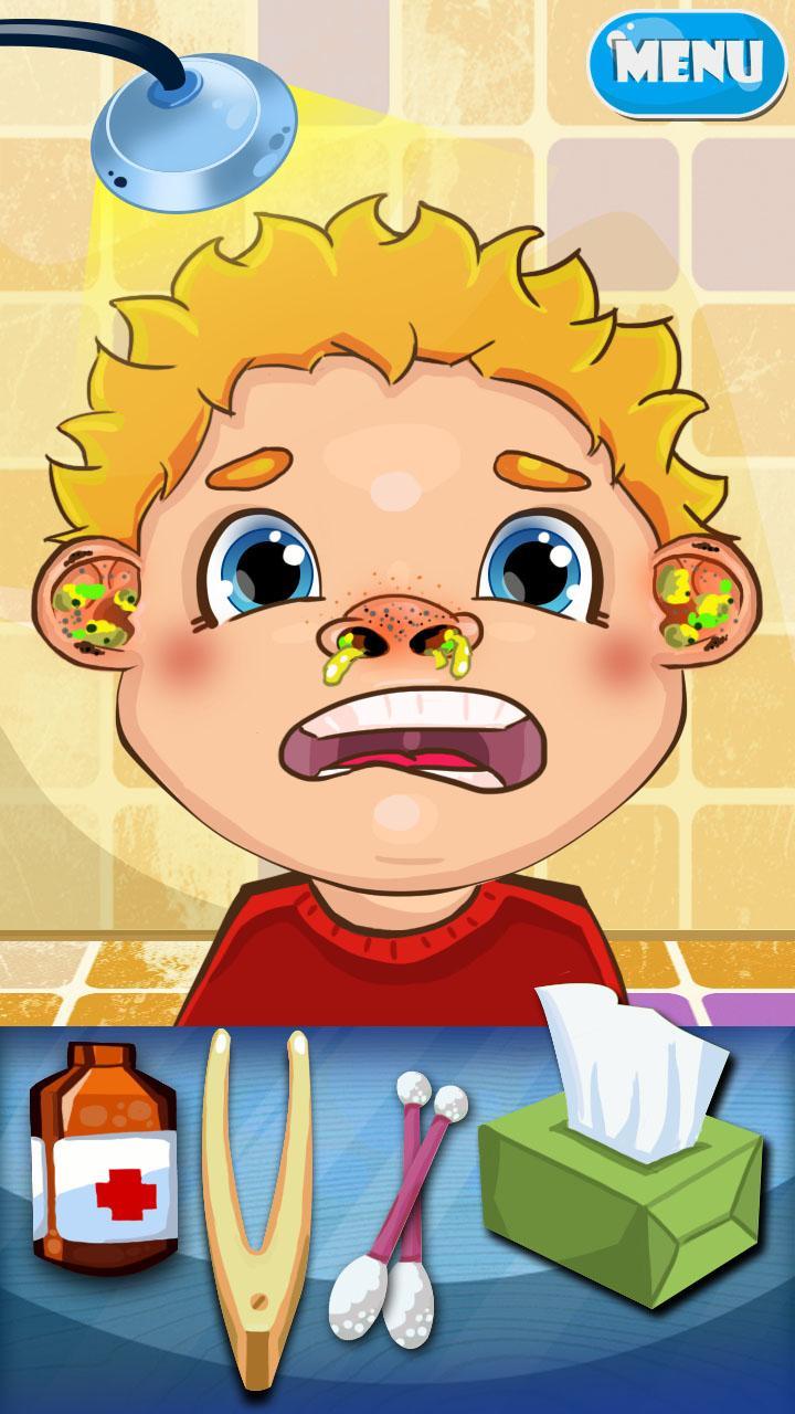 Simulator Dr. Nase and Ohr - ein Spiel, in dem Sie sich in der Rolle eines komplexen Facharztes Nase und Ohr ausprobieren können! Helfen Sie Kindern mit Nase und Ohren! Machen Sie die Reinigung der Ohren eines Kindes! Freie Nase von überschüssigen Trümmern und Parasiten!