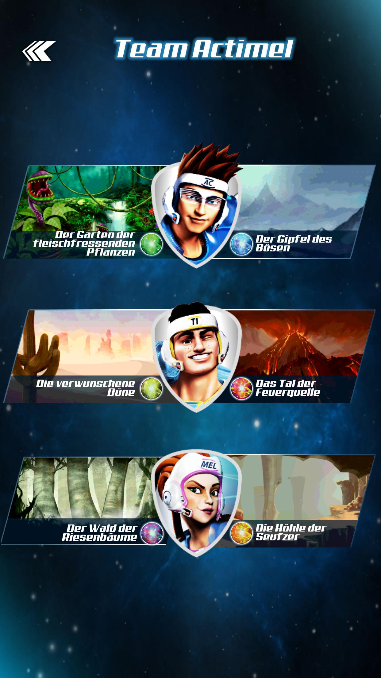 Malaktic hat das Herz des Planeten in viele kleine Actisteine zersplittert, die jetzt überall auf dem Planeten verteilt sind. Der Planet droht unterzugehen. Nur das Team Actimel und du können ihn retten!