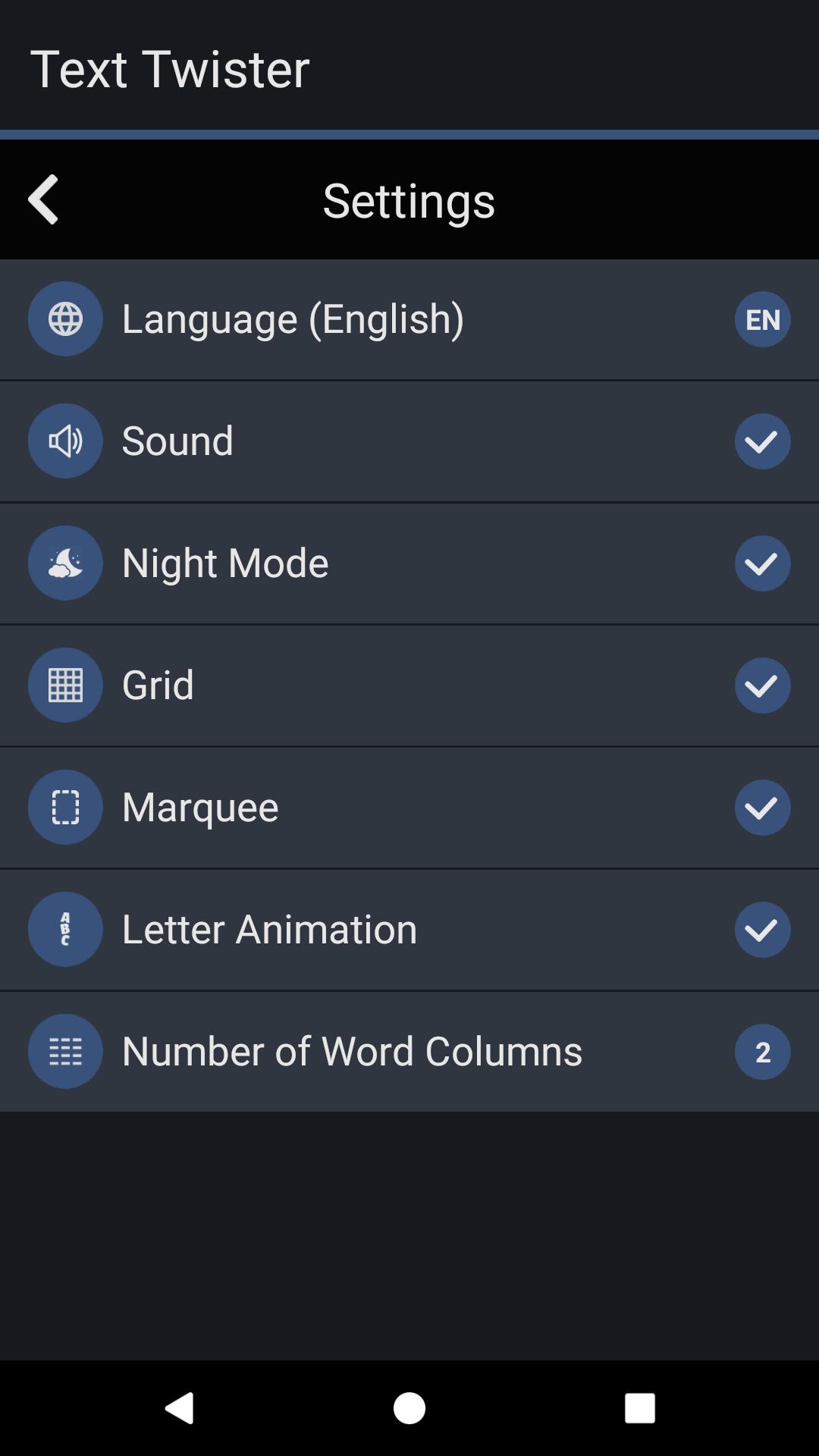Das Spiel hat 25 Level. Jede Ebene enthält mehr als 20 Wörter.