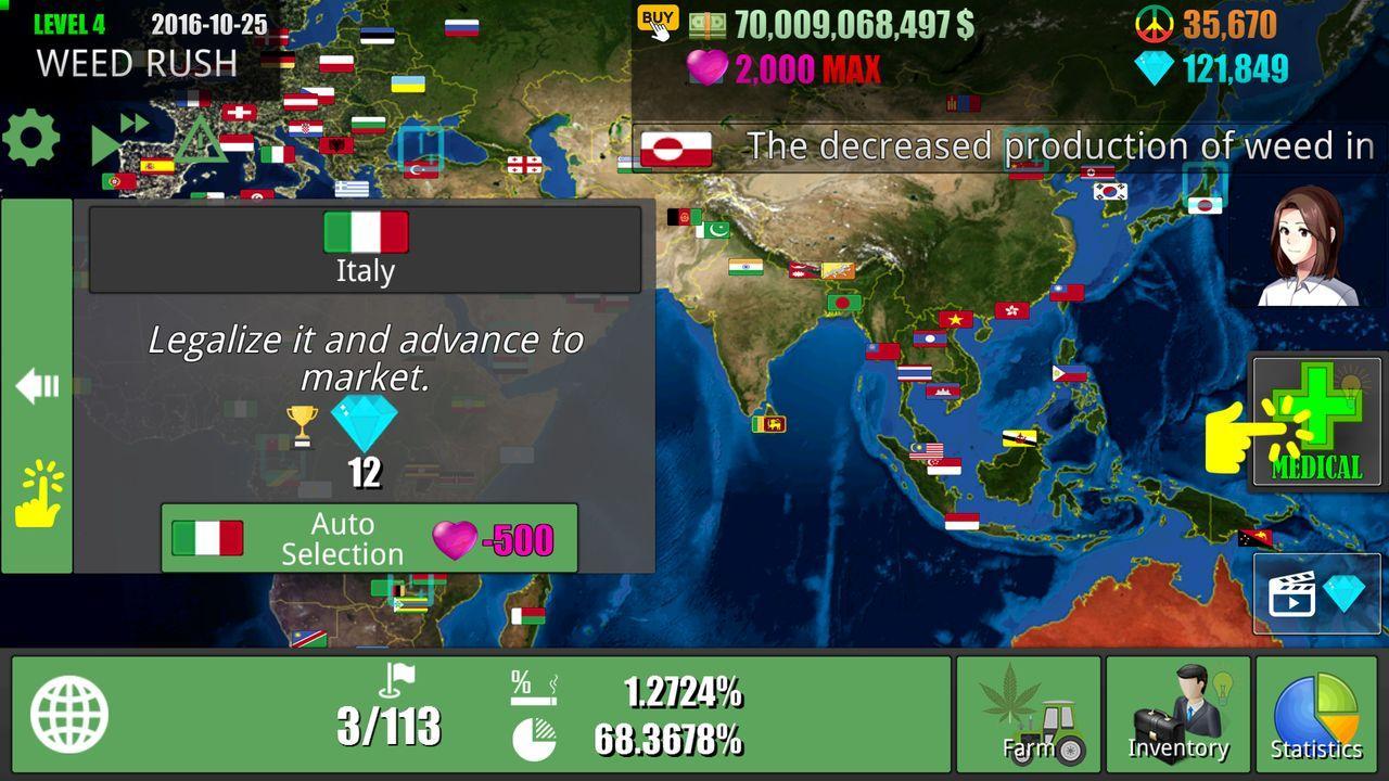 Sie können Ihr eigenes Imperium von Marihuana aufbauen und Ihren Wachstumsraum und Ihre Apotheke leiten und auf der ganzen Welt legalisieren.