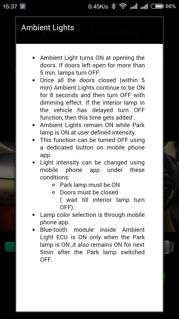 El módulo de dientes azules dentro de la ECU ambiental está encendida solo cuando la lámpara del parque está encendida, también permanece encendida para los próximos 5 minutos después de que la lámpara del parque se apagó