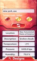 Cree un aspecto de pantalla magnífico con un widget fabuloso que muestra el pronóstico del tiempo. Hasta ahora, podría descargar un widget de reloj regular, pero ahora un nuevo reloj y un widget meteorológico está disponible totalmente gratis. Las condiciones climáticas se mostrarán en su pantalla junto con su reloj. Perfecto, sabrás cómo es el clima afuera es llover o nevar o está soleado y seco. La temperatura climática se mostrará en Celsius o en Fahrenheit para que pueda ver si hace calor o frío. No es necesario ver el canal meteorológico. Simplemente descargue "Weather Widget" y conocerá el clima mundial y el clima local. Elija la ubicación y obtenga la información adicional sobre el lugar que desee. Conocerá la presión, la humedad, la nubosidad y la velocidad del viento. ¡Obtenga el mejor dispositivo "Widgets for Android ™" y decore su pantalla! Simplemente seleccione el diseño favorito y obtenga una pantalla espectacular para su nuevo teléfono Samsung Galaxy.