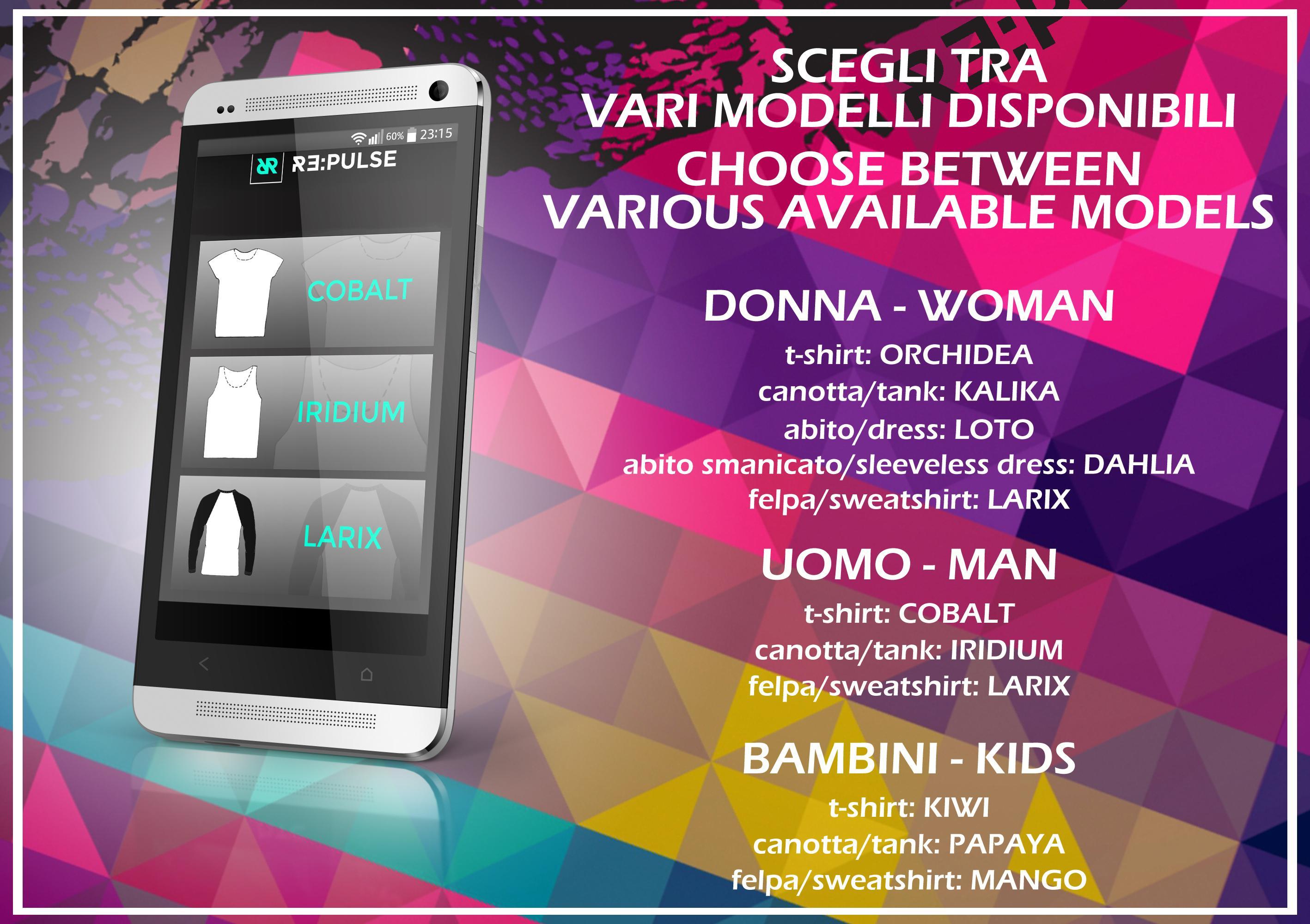 - Diferentes modelos para mujeres, hombres e hijos (camisetas, tanques, vestidos y sudaderas)