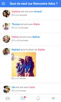 Rencontre Ados es una solicitud para conocer personas entre jóvenes de 13 a 25 años. Llene su perfil, agregue algunas fotos y estará listo para hacer tantas reuniones en su región o país y todo de forma gratuita.