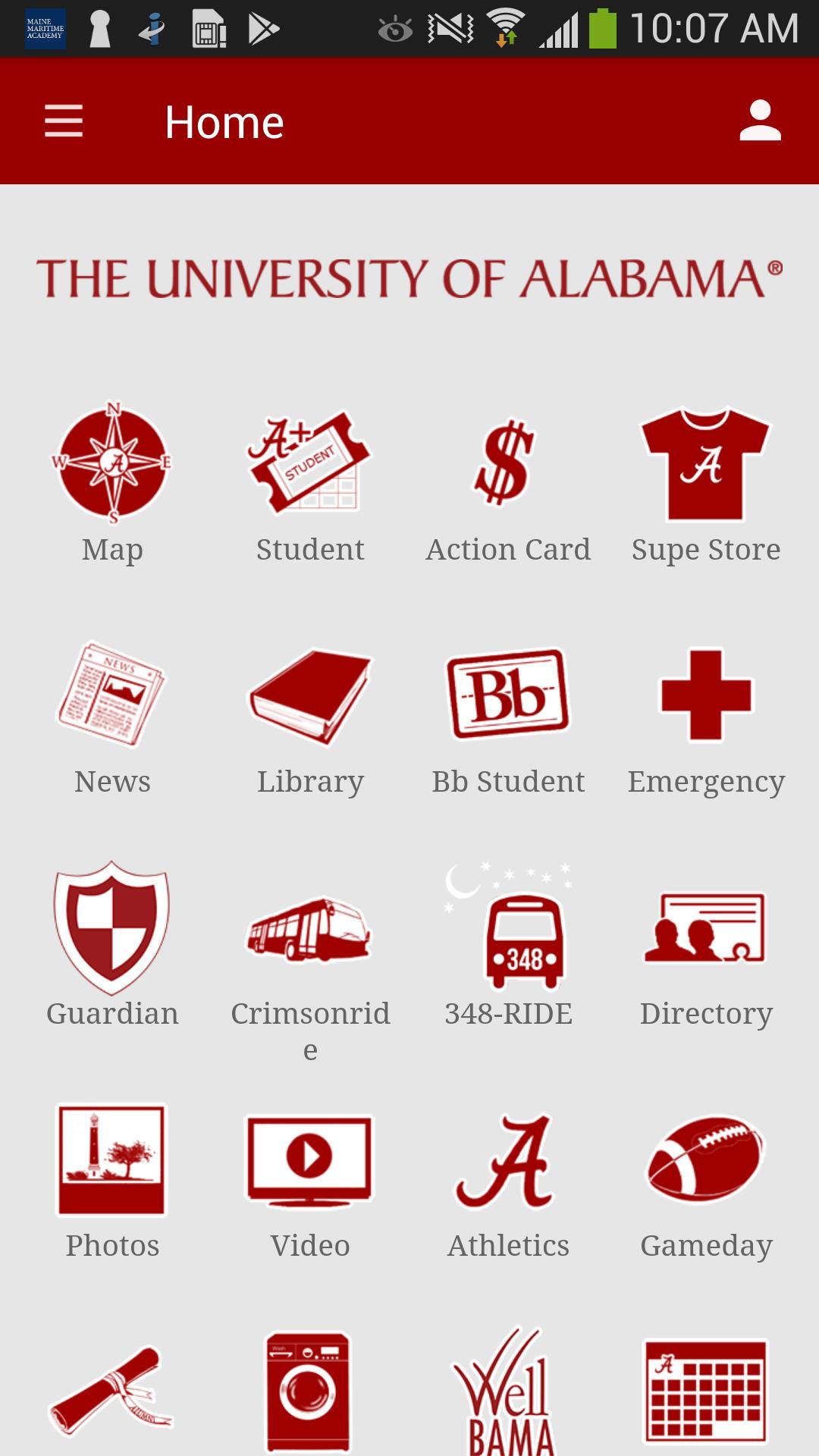 La University of Alabama quiere que te mantengas conectado, incluso mientras estás en movimiento. ¡Este conjunto de aplicaciones proporciona acceso instantáneo al directorio del campus, MAP y News, así como deportes de marea carmesí, catálogos de biblioteca, horario de clases y más! Esta es la aplicación móvil oficial de la University of Alabama .