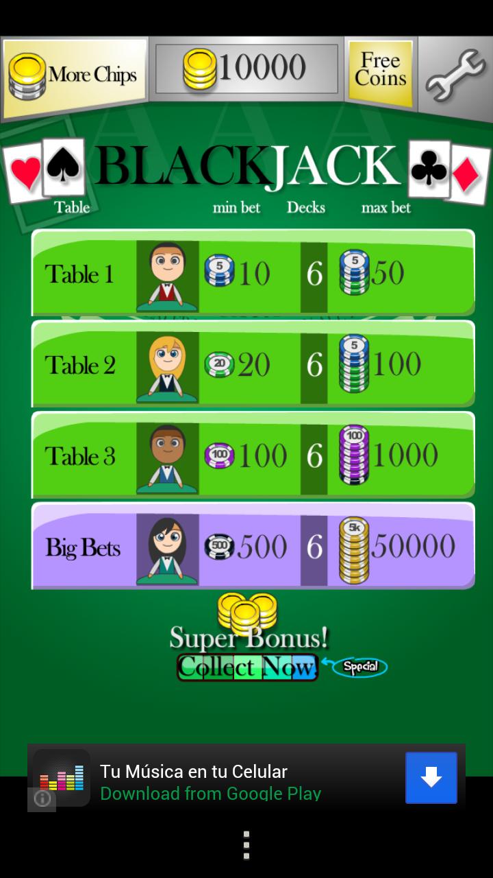 Juega blackjack, un solo jugador (multijugador próximamente),
