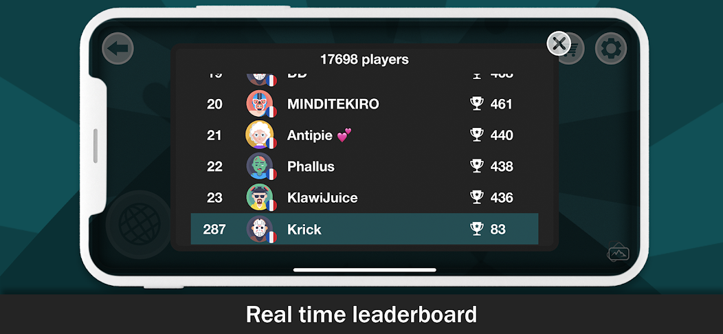 - Juega en línea con jugadores reales y vea tu rango en la clasificación