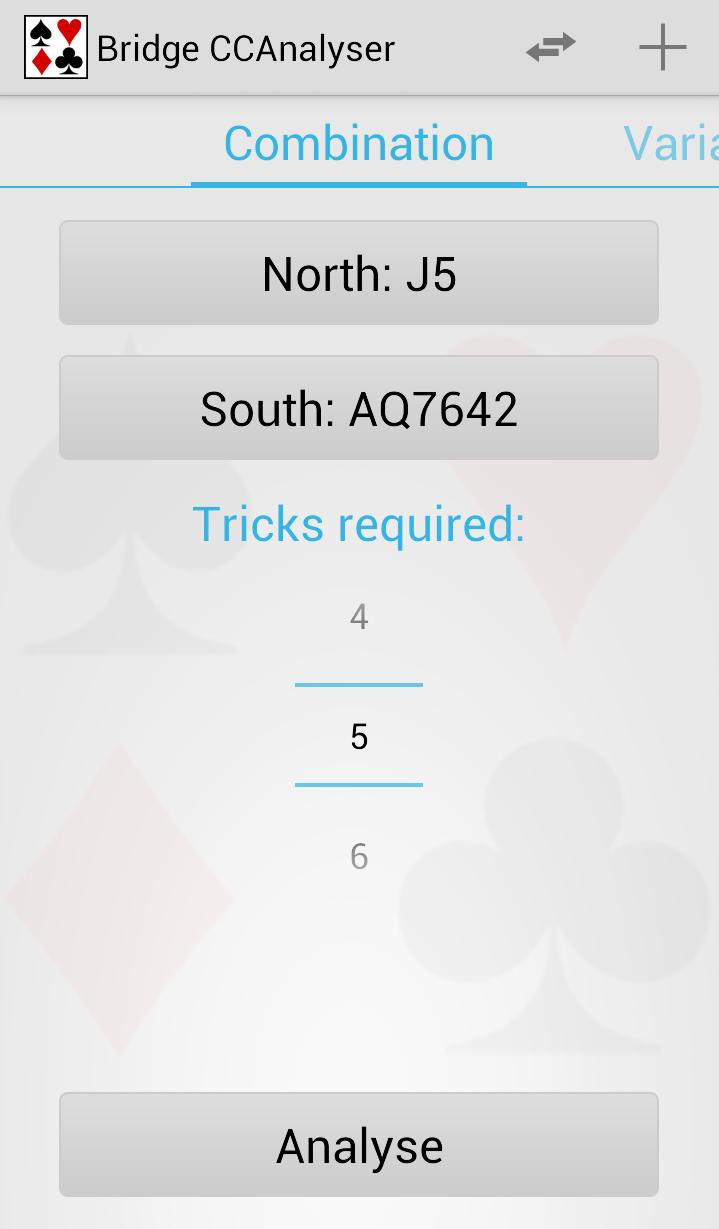 El Bridge CCAnalyser - Analizador de combinaciones de tarjetas de puente - APP se desarrolla para el análisis de combinaciones de tarjetas en Bridge.