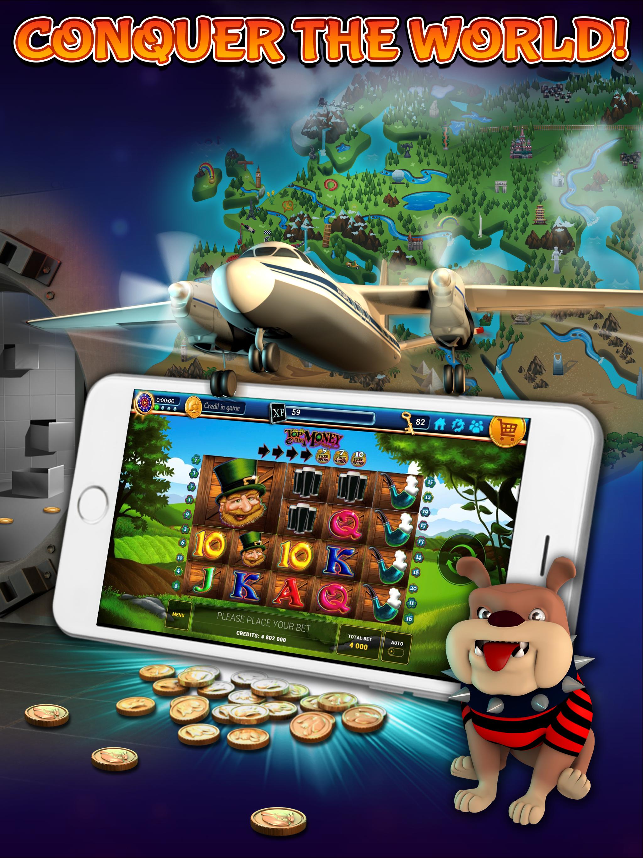 Tome el boleto de su avión cuando descargue esta emocionante aplicación que presenta famosas tragamonedas de casino con monedas emitidas cuando abre la aplicación para jugar.