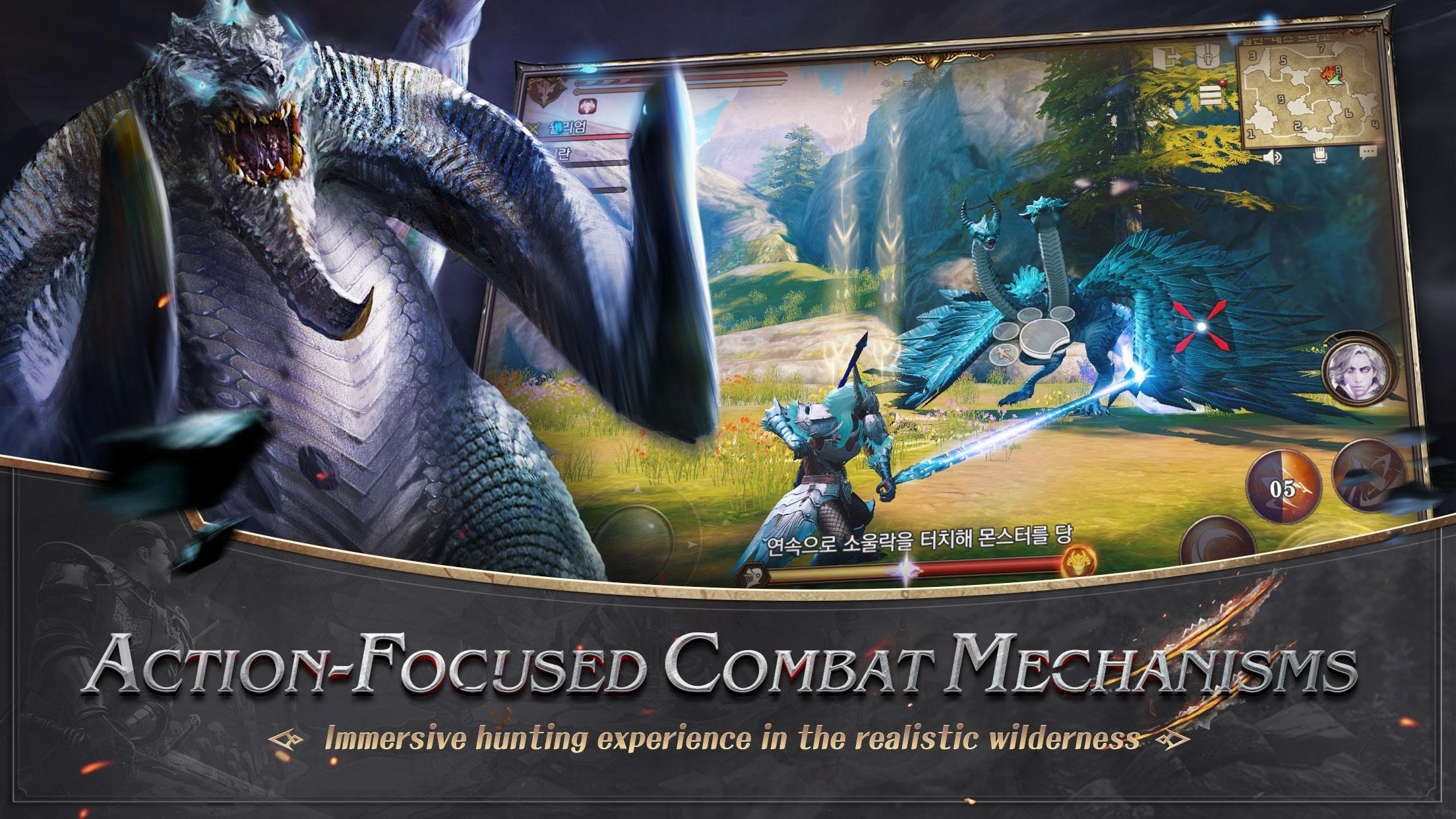 Forma tu escuadrón de caza con tus amigos, explora el entorno realista del desierto de los gigantes y lucha contra los monstruos gigantescos en las batallas llenas de acción.