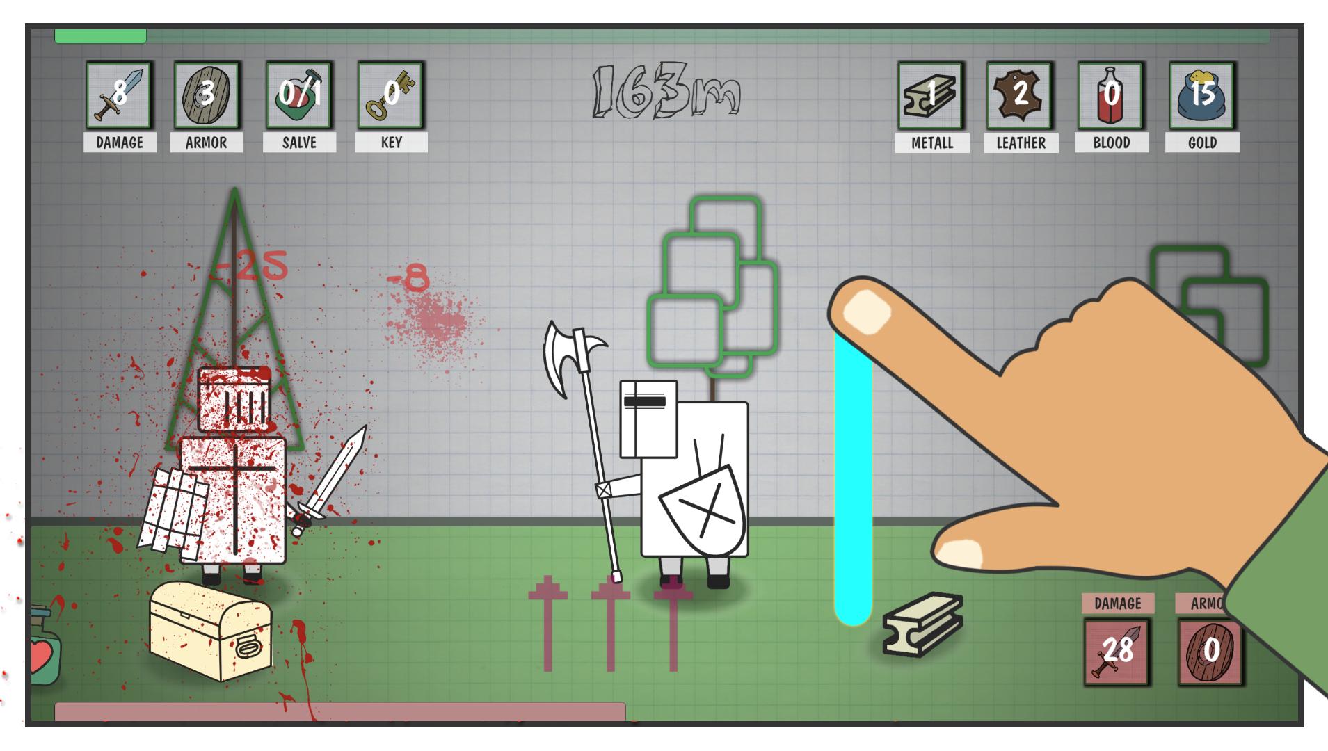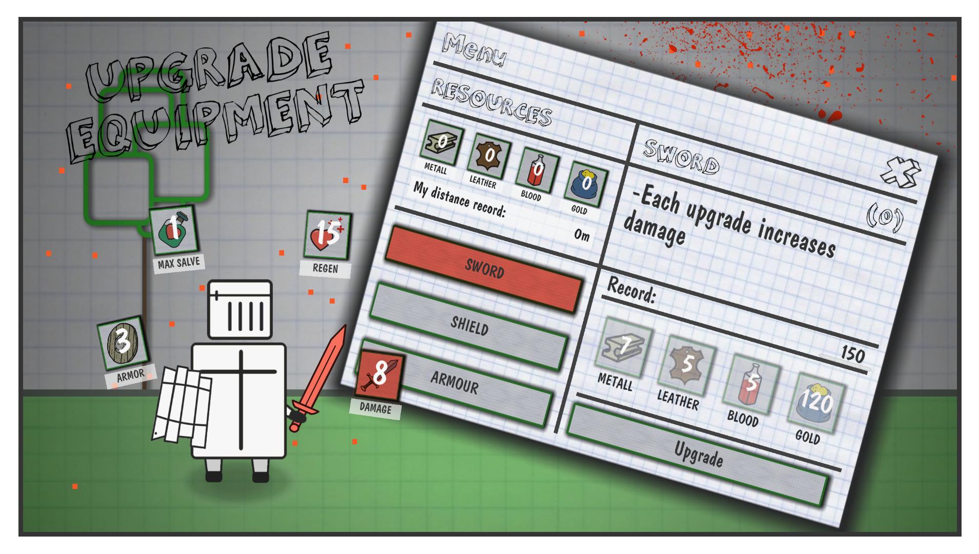 Eres un caballero glorioso corriendo a ninguna parte. ¡Usa toda tu violencia deslizante para matar enemigos, recoger recursos, actualizar equipos y disfrutar de las extremidades de los tontos que conocerás en el camino!