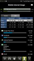 * Compte votre mobile (4G / 3G / Edge / GPRS) et l'utilisation du WiFi et l'affiche comme graphique, texte et table.