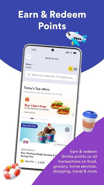 Quel est le problème? Avec des sourires, vous pouvez «niveler» votre style de vie aux EAU sans rompre votre banque. Smiles est une question d'offres, de remises et d'offres - tous les jours de la semaine et toutes les heures de votre journée. Smiles vous donne à acheter 1 obtenez 1 gratuitement dans 3000+ restaurants, cafés et parcs à thème entre les EAU, 50% de réduction sur les billets de cinéma, le cashback (comme Smiles Points) pour vos besoins quotidiens d'achat et bien plus encore.