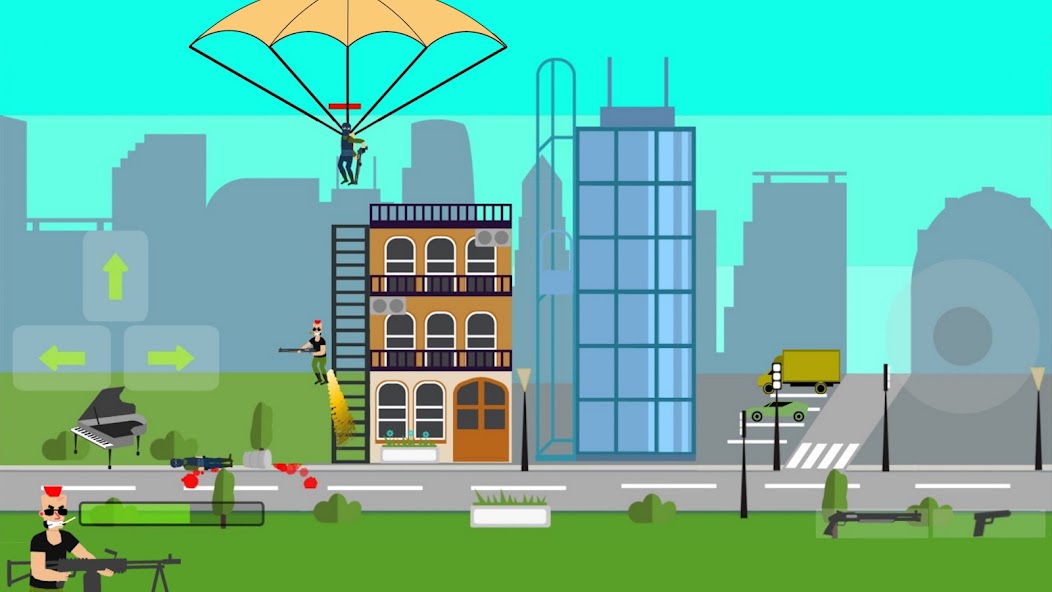 Dans ce jeu de tir 2D à défilement latéral excitant où le joueur assume le rôle d'un mec dur qui se bat sans fin terroristes, vous vous plongerez dans des batailles épiques et utiliserez une variété d'armes pour vous défendre contre les ennemis. Votre héros devra collecter des armes et participer à des batailles épiques, tout en maintenant le dynamisme du jeu et l'action constante à l'écran. Préparez-vous pour les explosions, les objets tombants et les obstacles dangereux qui vous attendent à chaque tour. De plus, votre personnage a une capacité unique à voler en utilisant son cinquième point. Des aventures incroyables, de l'adrénaline et du plaisir débridés vous attendent en grève de Butthurt!