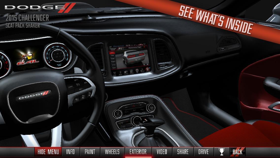 Personnalisez votre véhicule Dodge 2015 dans un environnement de réalité augmenté de pointe. Équipé de toutes les informations dont vous avez besoin sur des fonctionnalités comme le moteur rugissant, les nouvelles lumières ou le capot Shaker. Vous êtes en charge, alors doublez avec de nouvelles couleurs et roues sur votre voiture. Essayez-le dans un vrai environnement, comme votre allée. Ensuite, zoomez pour obtenir ces détails d'odge immaculés. Si vous vous sentez audacieux, entrez dans le siège du conducteur et explorez ce qu'il y a à l'intérieur. Enfin, parcourez votre voiture conçue personnellement sur l'un des trois cours disponibles: circuit, ville et côte. Préparez-vous à gagner.