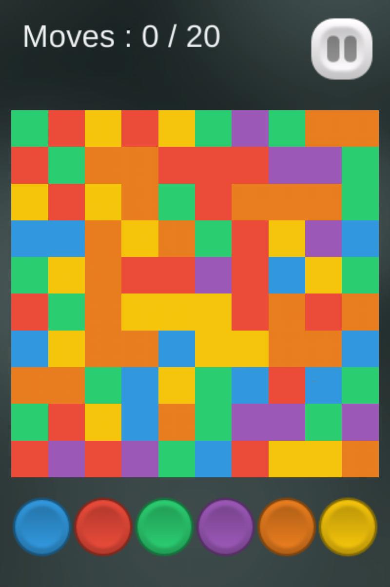 Remplissez la planche d'une seule couleur. Commencez avec le coin supérieur gauche de la planche et élargissez votre empire de couleur en remplissant de couleurs limites. Plaisir et niveaux sans fin.