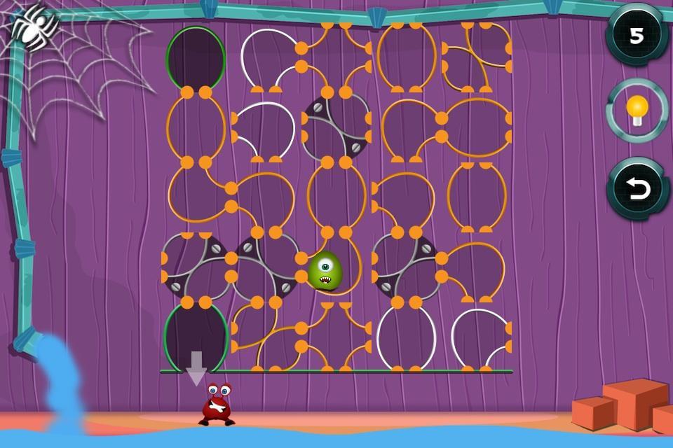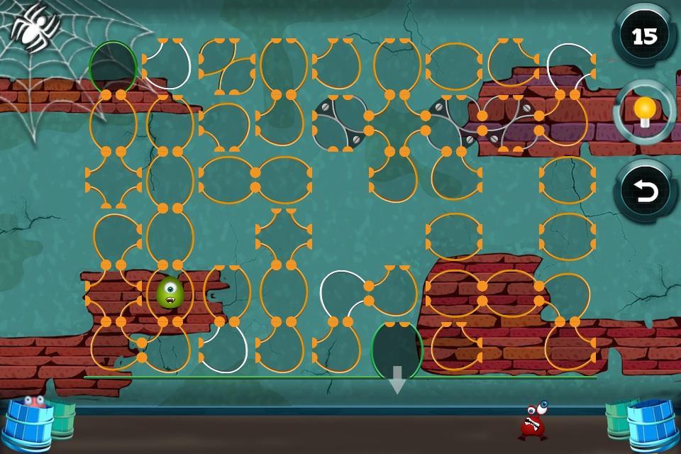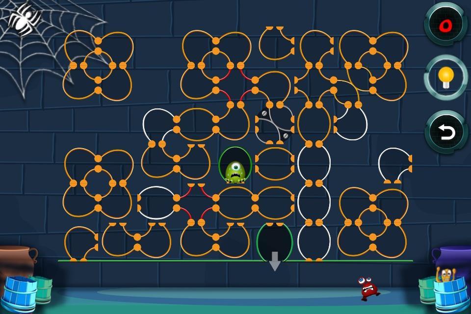 Un monstre a perdu son chemin dans un dédale de tuyaux. Il a très faim. Aidez-le à sortir du labyrinthe et laissez-le aller à sa nourriture préférée.